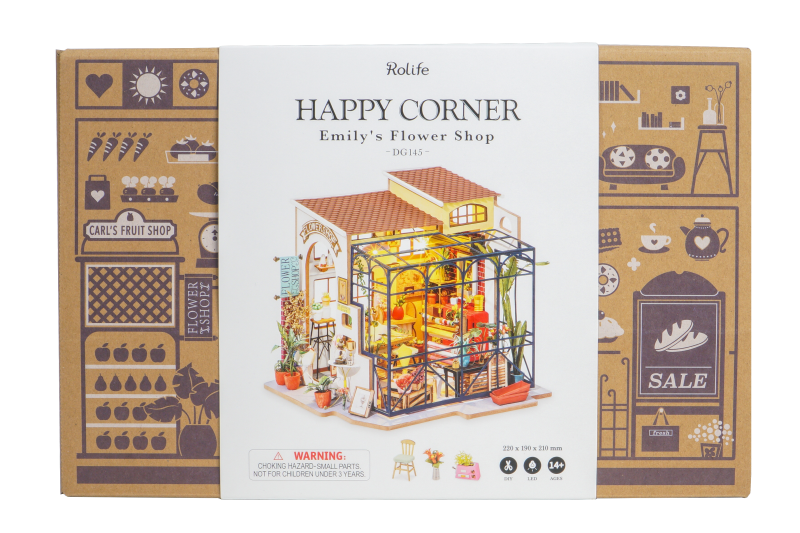 Ce Kit Rolife Emily's Flower Shop est l'un des plus vendus par Robotime et l'un des plus appréciés par les fans de bricolage et DIY. L'assemblage se fait par étape, tout est illustré dans le guide d'instructions qui est fourni. Tous les outils et accessoires sont inclus dans la boîte. Vous avez tout ce qu'il faut pour démarrer immédiatement.